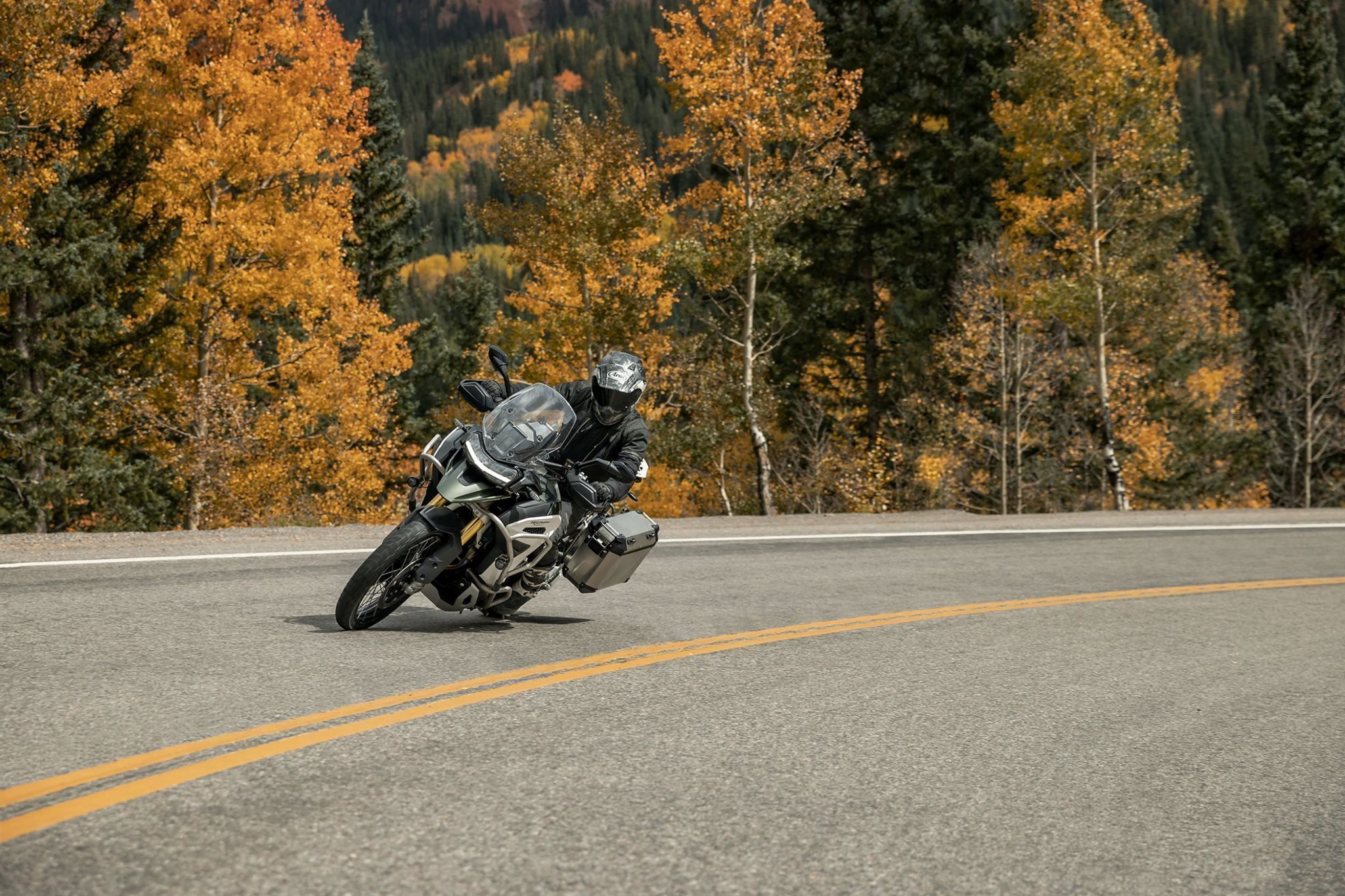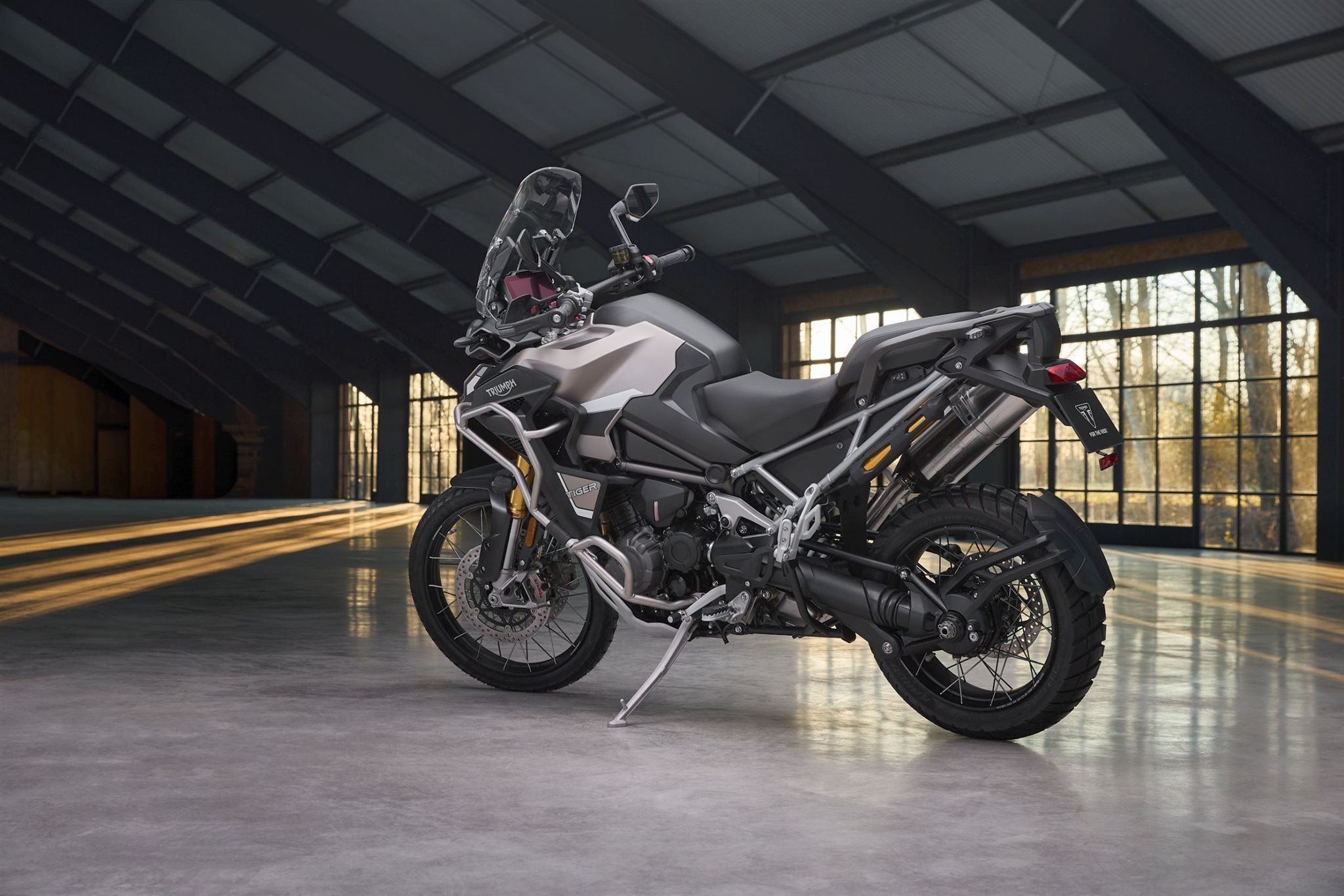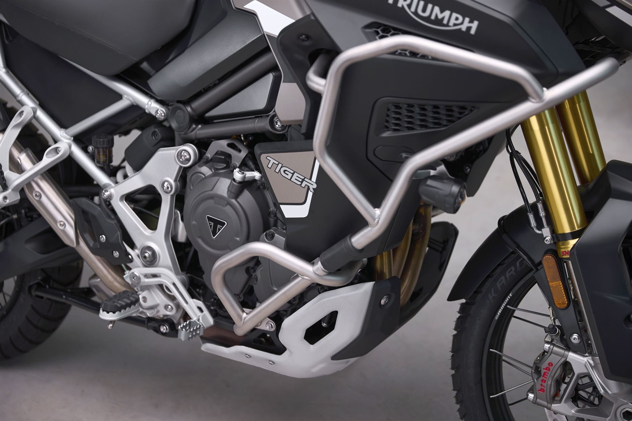 1.160 cm Dreizylinder-Motor (T-Plane) Souveräne Traktion und enorme Leistungsreserven Leichtbau-Chassis mit 30-Liter-Aluminiumtank Semi-aktives Showa-Fahrwerk (lange Federwege) Robuste Adventure-Designsprache mit 21-Zoll-Vorderreifen